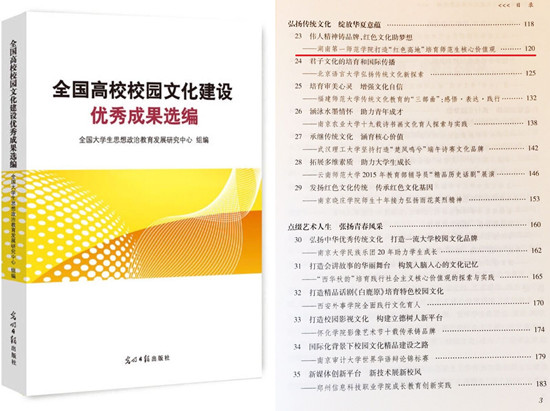近日,教育部思政司、全国大学生思想政治教育发展研究中心组织编写的《全国高校校园文化建设优秀成果选编》由光明日报社出版发行。beat365成果“伟人精神铸品牌,红色文化助梦想——beat365官方网站打造‘红色高地’培育师范生核心价值观”入选该书,充分展示了beat365校园文化建设成效和思政工作影响力。