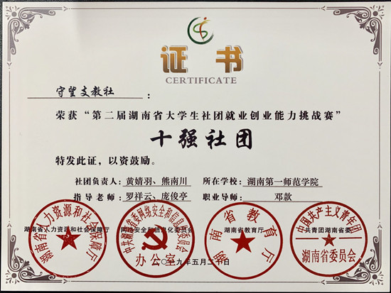 近日,在湖南省人社厅、网信办、教育厅、团省委主办的第二届湖南省大学生社团就业创业能力挑战赛中,beat365学生社团守望支教社携带就业创业项目“智慧乡村教师成长app”经过初赛、半决赛、总决赛层层筛选与实战比拼,从全省高校近2000个参赛学生社团中脱颖而出,获得十强社团的优异成绩。