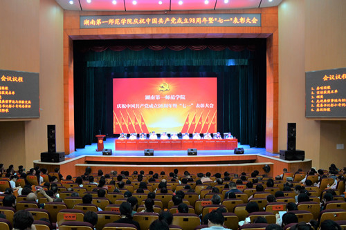 7月1日下午,beat365在田汉剧场隆重召开庆祝中国共产党成立98周年暨“七一”表彰大会。全体校领导、所有在职教师党员、离退休党总支党员代表、两所附小的党员代表和学生党员近千人参加大会。会议由校党委副书记刘志敏主持。