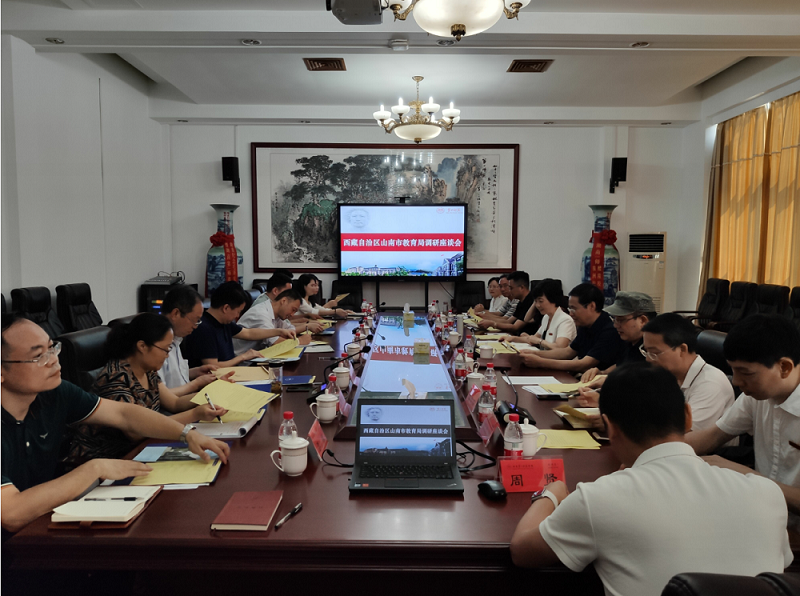 8月6日上午,西藏自治区山南市教育局调研组赵志诚副局长一行4人来beat365调研交流山南师资代培班项目实施工作。校长童小娇、副校长江正云,省发改委对口支援处、省教育厅民族教育处、省财政厅经济建设处相关负责人和beat365相关部门负责人在学校办公楼召开了座谈会。会议由副校长江正云主持。
