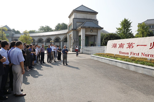 在润寰楼,彭小奇解读了该楼栋命名来源,“蔡和森,字润寰,是我们中国共产党的创始人之一蔡和森同志来命名的,他也是我们一师杰出校友.....”,干部教师们边走边记,听得聚精会神。整个活动持续了一个多小时,大家纷纷表示,在新民主主义革命时期,以毛泽东、蔡和森、何叔衡、任弼时等为代表的一师人,牢记共产党人的初心和使命,为民族独立、人民解放、国家富强做出了重大贡献。在新时代,我们要传承好这种革命精神,将其转化为“守初心、担使命,找差距、抓落实”的强大力量,转化为做好学校工作的实际行动。