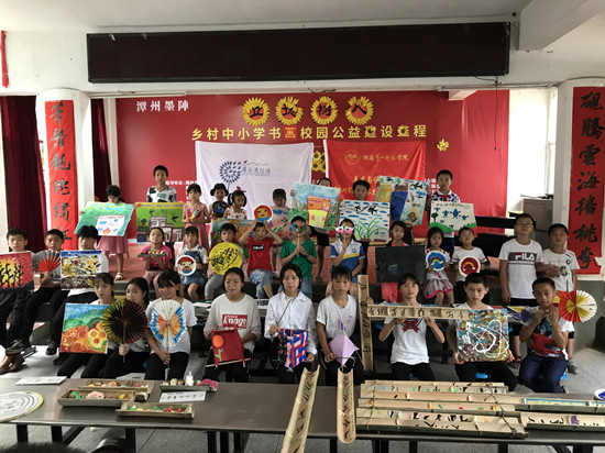 美术与设计学院自2016年开展“美育浸润行动计划”以来,结合大学生“三下乡”暑期社会实践,通过对湖南民族民间艺术的教育和普及,利用美术教育为实施手段,使湖南基层农村少年儿童可以享受公平的艺术教育资源,接受美育浸润,成为心智健康、性格完善、独立自信的个体。该活动负责人美术与设计学院书记范迎春教授介绍,组建了由20余名艺术学科专家、城市小学美术教育名师组成的实践指导团队和由200余名艺术学专业学生组成的志愿服务者团队,制定了十年目标(2016-2025)和分年度工作方案。