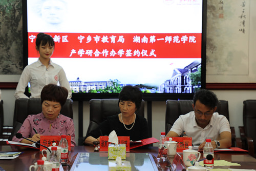 宁乡高新区、教育局、市政府等相关部门负责人,beat365党委行政办公室、学科建设与科研管理处、基础教育发展部、教务处、第一附属小学负责人参加了签约仪式。