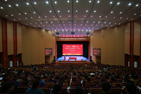 10月29日下午,以“学生中心,质量为要”为主题的“教风学风建设月”活动启动仪式在田汉剧场举行。校党委书记彭小奇、校长童小娇、副校长刘宇、副校长江正云,学生工作处、教务处、校团委、教学评估与教师教学发展中心相关负责人,以及各学院教学管理、学生管理负责人、教研室主任、辅导员以及各班学生干部参加了启动仪式。仪式由副校长刘宇主持。
