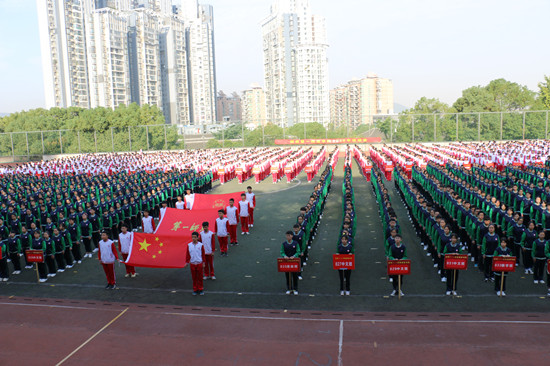 伴随着激昂的运动员进行曲,执旗手昂首挺胸,高举鲜红的五星红旗,迈着整齐有力的步伐进入会场,校旗方阵、院旗方阵、70个班级方阵紧随其后。他们精神抖擞、热情昂扬,展现了一师学子青春、阳光、向上的精神风貌。在奏唱国歌仪式后,刘志敏致开幕辞。他表示学校一直秉承着“三育并重,身心并完”的教育理念,体育事业一直保持着良好的发展态势,从2009年至今,学校体育代表队在全国和全省大学生运动会比赛中共获得金牌216枚,银牌181枚,铜牌165枚,他希望全体运动员本着奥林匹克的精神和卓越、友谊、尊重的价值观投身于比赛,赛出佳绩,赛出风格。854班赵陆杰、855班唐铸分别代表运动员、裁判员宣誓。彭小奇宣布运动会开幕。随后,城南书院2018级学生和2019级学生分别表演了全国中小学生广播体操“七彩阳光”和全国中小学生武术操“旭日东升”。