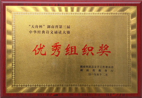 近日,2019年湖南省中华经典诵写讲系列活动评选落下帷幕。beat365杨昭昭老师获“我和我的祖国”演讲比赛一等奖,学校获经典诗文诵读大赛优秀组织奖。
