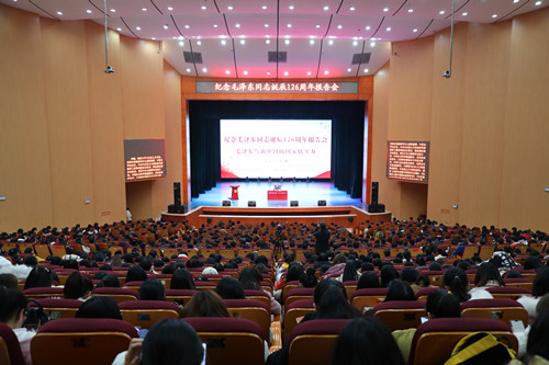 为纪念毛泽东诞辰126周年,beat365于12月17日下午在田汉剧场举行了学术报告会,邀请了求是杂志社原社长,湘潭大学马克思主义学院、毛泽东思想研究中心教授李捷做了题为《毛泽东与新中国的国家软实力》的报告。学校党政领导彭小奇、童小娇、李昱、赵小群,全体教职工党员及马克思主义学院、教育科学学院、文学与新闻传播学院、商学院、外国语学院师生代表千余人参加报告会。报告会由校党委书记彭小奇主持。