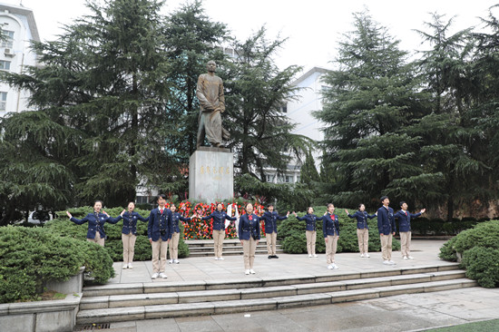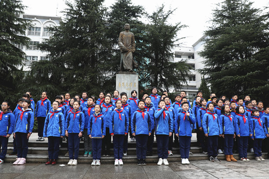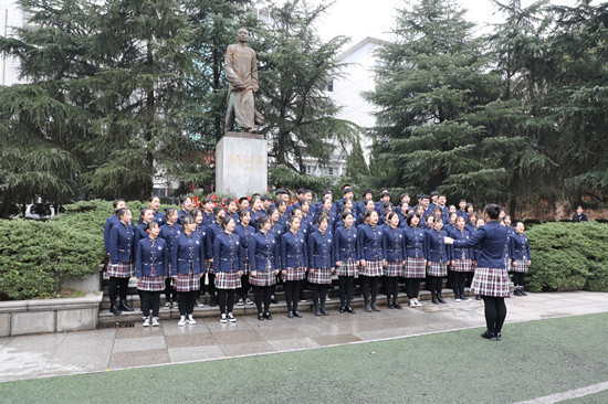 随后,活动通过朗诵毛主席诗词与演唱歌曲等形式进行缅怀。毛泽东与第一师范纪念馆志愿者讲解员集体表演了《忠诚的灵魂》,城南书院公费定向师范生演唱了《东方红》,西藏山南师范班同学演唱《北京的金山上》,一附小学生朗诵了《沁园春·雪》。最后,全体师生合唱校歌。仪式结束后,全体人员怀着无比崇敬的心情,绕青年毛泽东铜像一周,瞻仰主席铜像,表达对伟人的追思和缅怀。