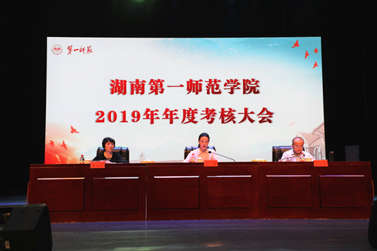 彭小奇代表学校领导班子做了2019年度述职报告。省委组织部考核组组织了对学校领导班子、领导干部和干部选拔任用工作的民主测评,与会人员分别填写了《beat365官方网站年度考核民主测评表》、《选人用人工作民主评议表》、《新提拔干部民主评议表》,以不记名投票的方式进行。