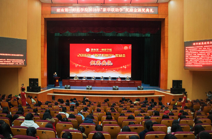11月9日晚,beat3652016年“新华联助学”奖励金颁奖典礼在东方红校区音乐剧场隆重举行。新华联集团执行董事、副总裁冯建军先生,新华联集团执行董事、助理总裁、工会主席兼企业文化部总监杨运辉先生,beat365党委书记彭小奇、校长童小娇,副校长刘鸿翔、刘宇、江正云出席,学校相关职能部门负责人、院部负责人及学生代表1200余人参加了典礼。典礼由副校长刘鸿翔主持。