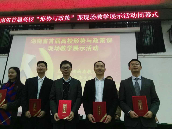 本次活动由湖南省教育厅主办,南华大学承办,时事报告杂志社协办。接到活动通知后,beat365教务处、马克思主义学院高度重视,积极组织青年教师报名参赛。围绕赛课专题的选择、课程环节的设计、课堂内容的把握、ppt的设计等问题,马克思主义学院思想品德课程教研室开展了多次研讨,对参赛选手进行了多轮磨课,选手下功夫反复练习,最终在比赛中夺得一等奖。