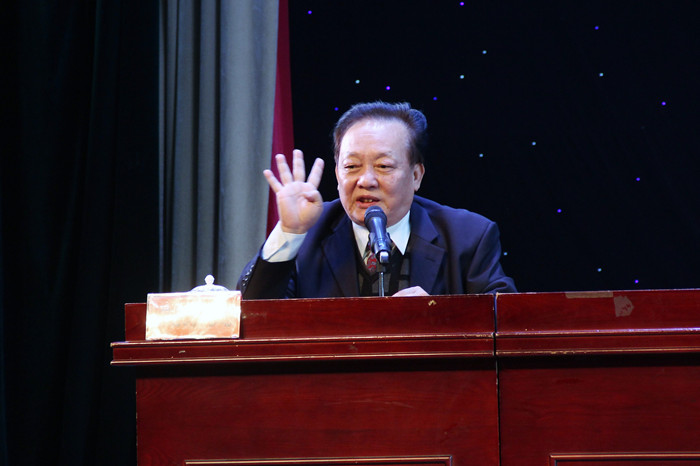 王永光在讲课中将戏曲表演和影视表演之间的关系类比为“米”和“酒”的关系,并以一首《戏曲是诗》作为向在座学生开启戏曲欣赏之门的钥匙。王永光围绕戏曲文学、戏曲表演、戏曲音乐、戏曲服装四个方面畅谈如何欣赏戏曲,认为这四个方面各自独立自成体系,又相互交织在一起,都是为了表现剧本文学所要反映的人生百态。戏曲是“以说唱演故事”,唱的是戏文,念的是韵白。王老师深入浅出的讲解、声情并茂的展示,多次引发现场雷鸣般的掌声。