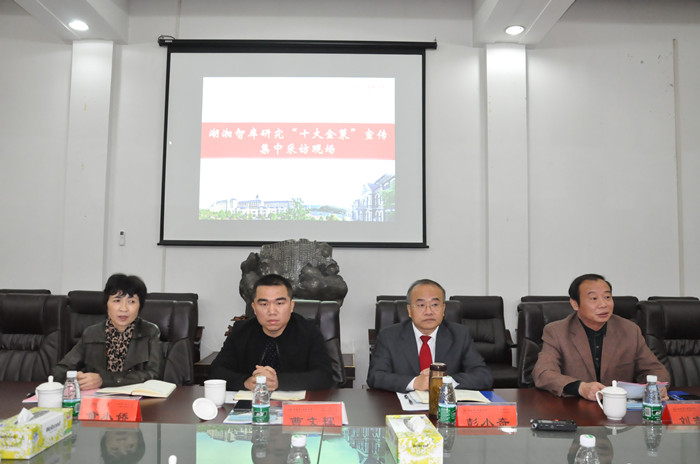 10月25日上午,由省委宣传部社科规划办组织的湖湘智库研究“十大金策”宣传集中采访活动在beat365东方红校区会议室举行。来自湖南日报、湖南卫视、红网、新湘评论、湖南经视、华声在线、三湘都市报、湖南人民广播电台等多家省内权威媒体的记者,在省委宣传部社科规划办曹文辉同志的带领下,对beat365党委书记彭小奇及其智库研究成果进行了专访。