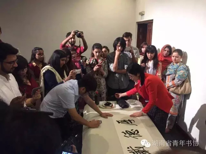 10月21日,湖南省青年书协副主席、beat365书法学科带头人王佳宁博士随湖南省文化厅副厅长、湖南省书法家协会主席鄢福初一行,应邀参加由中国驻巴基斯坦大使馆、巴基斯坦新闻广播及国家遗产部主办的“庆祝中华人民共和国成立67周年中巴艺术联展”,受到中国驻巴基斯坦大使孙卫东、中国驻巴使馆文化参赞游翼的亲切接见。此次艺术联展对传播中华传统文化,促进湖南与巴基斯坦文化交流均具有积极意义。