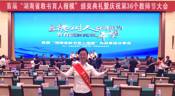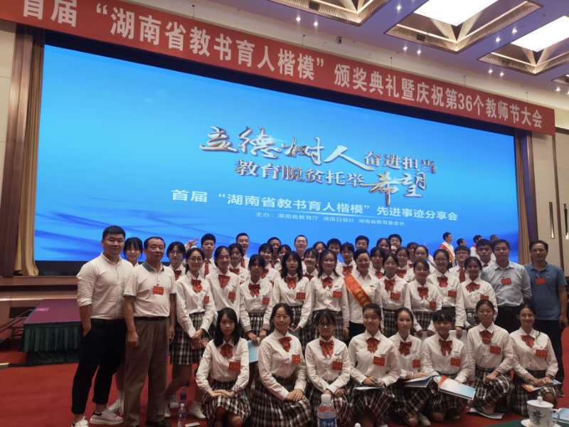 在第36个教师节即将到来之际,9月9日上午,首届“湖南省教书育人楷模”颁奖典礼在长沙举行。省委书记杜家毫,省委副书记、省长许达哲会见优秀教师代表,并为2020年“湖南省教书育人楷模”特别奖、“湖南省教书育人楷模”获得者颁奖,代表省委、省政府向全省广大教师和教育工作者致以节日问候和崇高敬意。
