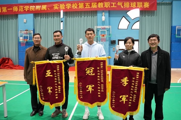 赛后,江正云为获奖团队颁奖并表示,气排球联赛的开展,不仅充分展现了一师人团结一致、勇于争先的精神,更加强了各附小、实验学校之间的沟通与联系,体现了友谊第一、比赛第二的体育精神,把实事求是的“一师魂”传递给每一位努力拼搏、顽强奋进的“一师人”。
