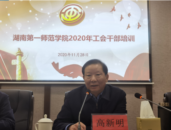 湖南省教育工会主席高新明出席并作主题报告。他指出,工会干部的教育培训,是事关工会组织自身建设、作用发挥的一项基础性工作。他从四个方面工会工作进行了论述:第一,在新形势下如何服务中心大局;第二,要学好法律法规,认准工会定位;第三,要增强理论修养,提升政治站位;第四,要提升实践能力,找准工会工作着力点。