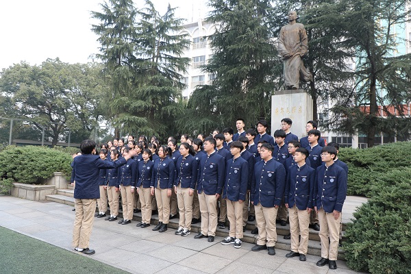 学校全体在家党政领导、全体处级干部、全体辅导员、纪念馆全体成员以及城南书院师生代表聚集在青年毛泽东铜像前,怀着无比崇敬的心情参加了活动。