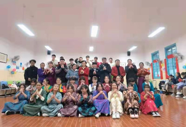 为了让同学们过一个欢乐充实的小年,城南书院为西藏班同学举办了“西藏班2021年新年联欢会”,西藏班同学向老师们展示了他们精心编排的舞蹈、合唱、三句半等精彩节目,用动人的歌声、美妙的舞姿表露了节日的欢快。联欢会后,师生共进了午餐。彭小奇、童小娇亲切地向藏族学生们拜年:“新年快乐,扎西德勒!”在欢声笑语中,领导们与学生话家常、谈学习生活,并代表学校进行了慰问。城南书院和后勤处老师为同学们准备了旺旺大礼包及花生、糖果、饼干等慰问物资,在喜庆的节日氛围里,祝福孩子们健康平安、快乐成长、学习进步,让孩子们感受到了老师的关怀呵护,同窗学友的守望相伴,共同唱响了民族大团结和谐之音。