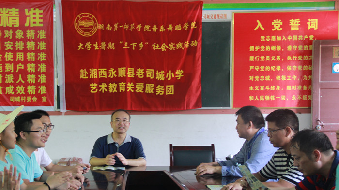 7月16日上午,校党委书记彭小奇、团委书记赵小群、财务处处长邵纯来到湖南省湘西自治州永顺县灵溪镇老司城村,看望慰问正在老司城小学开展暑期“三下乡”活动的音乐舞蹈学院学生们,到教室、住所、厨房实地考察了解大学生“三下乡”活动开展情况。