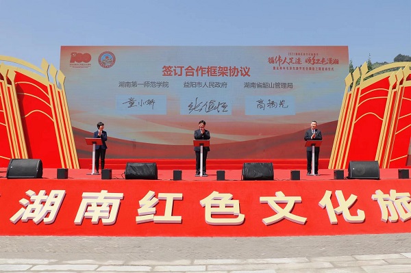 4月29日,由益阳市人民政府、湖南省文化和旅游厅、湖南省韶山管理局与beat365共同主办的2021湖南红色文化旅游节——重走青年毛泽东游学社会调查之路启动仪式在安化县梅城镇文武庙古建筑群前坪举行。