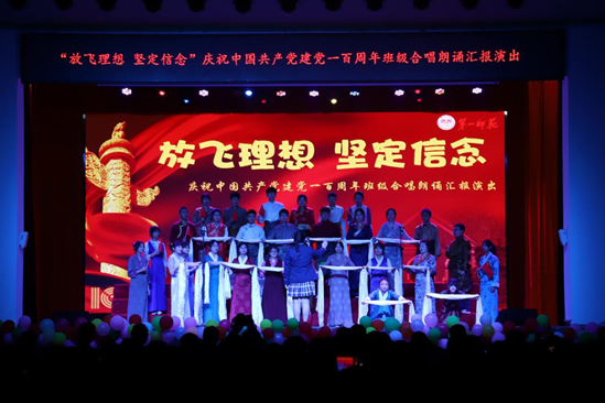 “放心吧祖国、放心吧亲人、为了胜利我要勇敢前进”,此次合唱朗诵汇演在892小教班这首振奋人心、鼓舞士气的《当那一天来临》中拉开帷幕。900中文班的同学们将中国共产党扬帆起航之地——嘉兴南湖进行深情的颂扬;30名934西藏班学子共同唱响了民族大团结的赞歌;896思政班同学一首《永远跟党走》呈现了中国共产党从嘉兴南湖出发,百年来的艰辛与辉煌,表露了永远跟党走的赤子之心;894西藏班学生将一曲《再唱山歌给党听》献给让西藏百万农奴翻身做主的中国共产党,表达了藏族儿女对党的感戴之情;汇演在861班同学们讴歌党的脱贫攻坚伟大事业的《追梦之路》中圆满结束。整场演出精彩纷呈,掌声不断,充分展露了一师青年学子一心向党、感念党恩的款款热情。