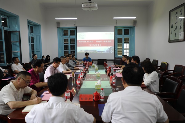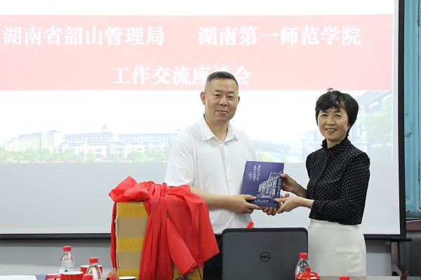 5月10日上午,省韶山管理局党委书记、局长高扬先,省韶山管理局党委委员、副局长汤光强、付维华率代表团来beat365城南校区开展党史学习教育,并洽谈双方合作事宜。校长童小娇,党委委员、副校长彭晓辉,党委委员、宣传部部长赵小群出席了座谈会。座谈会由彭晓辉主持。
