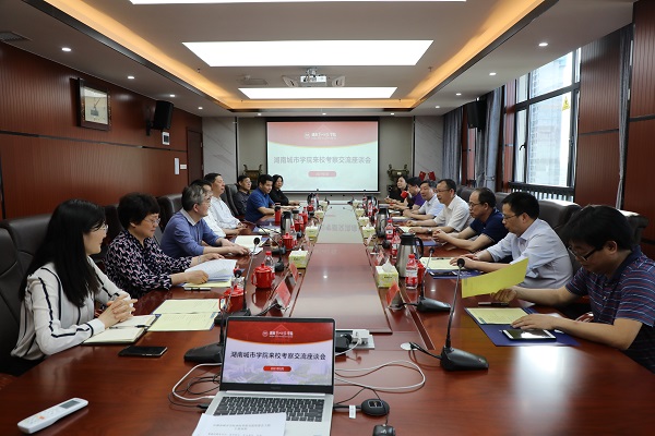 5月14日下午,湖南城市学院党委书记李建奇,党委副书记、校长汤放华,副校长夏宏宇、何振、谭献良、袁志成,党委委员、湖南高尔夫旅游职院党委书记罗新湘一行9人来校考察交流。校领导罗成翼、李克勤、曹兴、周发明、李昱、江正云、蒋蓉和党政办负责人热情地接待了来访的客人,并在东方红校区大学生创新创业大楼713会议室进行了座谈。座谈会由校党委书记罗成翼主持。