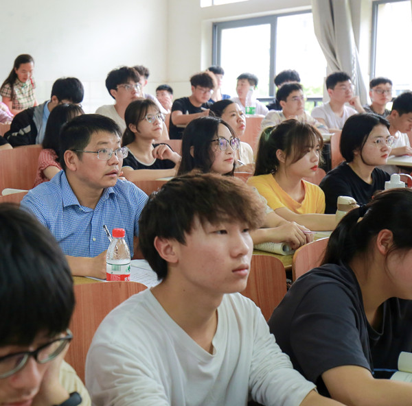 党委书记罗成翼在马克思主义学院王竹苗老师的“马克思主义哲学原理”课堂听课。课后,罗成翼就教学内容的设计和教学方法的选择与王竹苗老师进行了亲切交流。他指出,思想政治课要更加贴近大学生的日常生活,更好地帮助同学们树立坚定的共产主义信仰和目标,成长为适应新时代需要的优秀大学生。