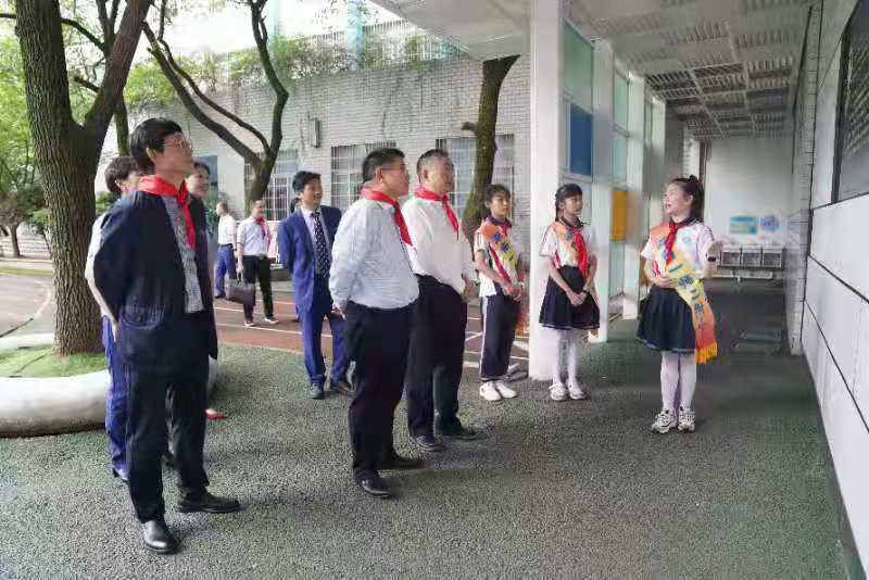 步入校园,少先队员们给蒋伯伯一行献上了鲜艳的红领巾。蒋昌忠厅长一行在学校领导陪同下参观了校园,听取了学校办学理念、师生发展、教育教学等情况汇报,对学校办学成效给予了充分肯定。