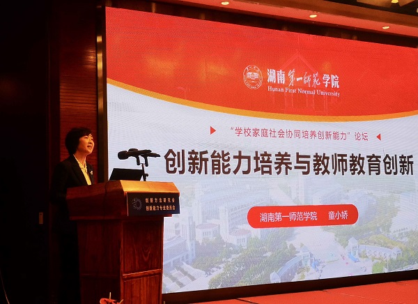 童小娇作了“创新能力培养与教师教育创新”的主题发言。她指出,千秋基业,人才为先,建设创新型国家需要大批的创新人才,而创新人才的培养则首先依赖于有一支创新型的教师队伍。她从把创新能力作为教师核心素养,调整教师教育培养目标;设立创新人才培养特区,创新教师培养模式;改变课程结构单一封闭的状况,构建多元开放创新型的课程体系;坚持师德为要,强化师德养成和职业理想教育;提倡教师研究性地教,学生创造性地学,变革教学方式方法;打造立体化的教学平台,培养师范生创新实践能力六大核心问题,结合一师特色做法进行了科学阐释。与会领导和专家对发言表示高度赞赏,并希望联合社会各界力量为“一师教育理念”“一师教育模式”的深入研究和推广做出进一步努力。