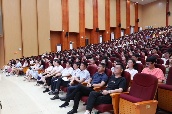 6月14日晚19:00至21:00,校党委书记罗成翼在东方红校区田汉剧场开讲千人思政大课堂,为来自各个学院的千余名学生代表和部分教师专题讲授“中国共产党为什么能”。活动由校党委委员、副校长周发明主持。校党委委员、宣传部部长赵小群,长沙南方职业学院党委书记任晓晴,学生工作处处长陈志武、教务处处长胡春光、马克思主义学院党总支书记欧阳斐、副院长钟佩君、现代教育技术与网络中心主任朱承学、人事处副处长巢卫平到现场学习。