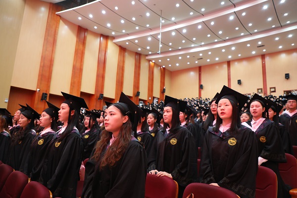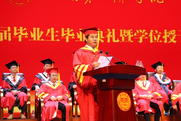 教育科学学院李金国教授作为教师代表发言,向毕业生表达祝贺,勉励全体毕业生终身学习,独立思考,不断开阔眼界,继续秉持“实事求是,不自以为是”校风,迎接崭新未来。文学与新闻传播学院的刘桂山同学代表毕业生发言,号召全体毕业生谨遵母校的教诲,虔诚学习,认真生活,让母校以大家为荣。