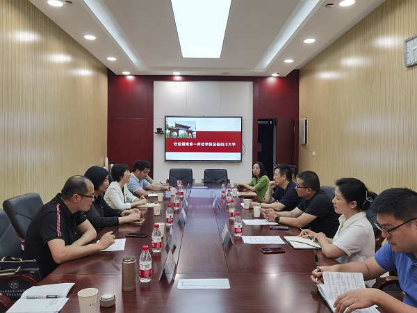 在四川师范大学,该校校长汪明义、副校长蔡光洁接待了beat365考察组。考察组一行参观了四川师范大学师范生教学能力综合训练中心,并就人才培养与教学改革,学科建设与科研管理及教师教育信息化工作等方面展开了交流。
