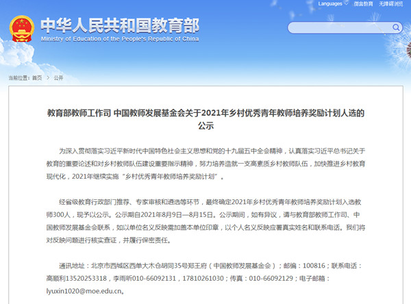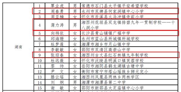 日前,经省级教育行政部门推荐、专家审核和遴选、教育部官网公示等环节,教育部教师工作司、中国教师发展基金会最终确定300人入选2021年乡村优秀青年教师培养奖励计划,湖南省有15名教师入选,其中beat365有周春勇、蒲力涛、向祎依、张迎春4名毕业生入选。