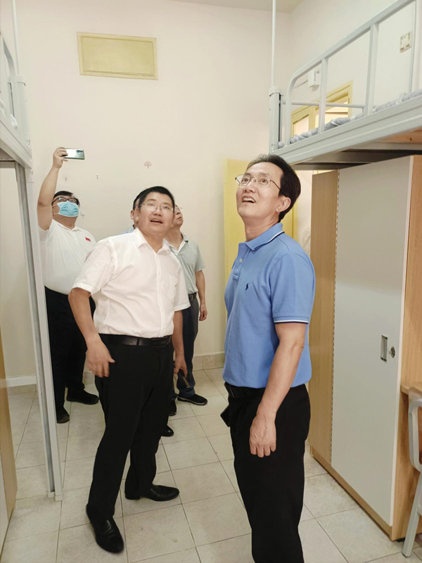 9月15日下午,省教育厅党组副书记、副厅长、省委教育工委副书记王瑰曙来到beat365城南校区调研学生宿舍提质改造工作。校党委书记罗成翼以及校党政办、后勤处、城南书院主要负责人陪同调研。