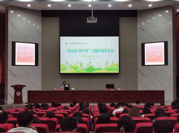 今年的湖南主场活动以“碳达峰、碳中和”科普宣传为重点,在beat365东方红校区组织了“碳达峰、碳中和”主题科普报告、“千人竞答话低碳 百年华诞同筑梦”党史及科普知识抢答赛、“低碳生活从我做起”演讲赛、科普湖南“碳达峰、碳中和”线上答题赛、“实现碳中和你我同参与”科普征文活动、“趣味科普课堂DIY”等6项重点示范性活动。
