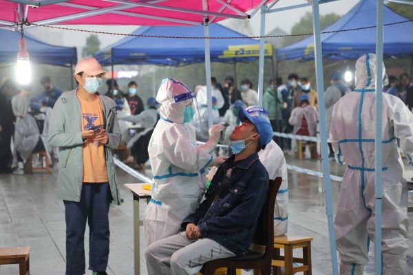 据悉,此次检测共开设20条通道,由专业医护人员进行检测,为保证检测效率,将于今日内完成全校师生的核酸检测采样工作。