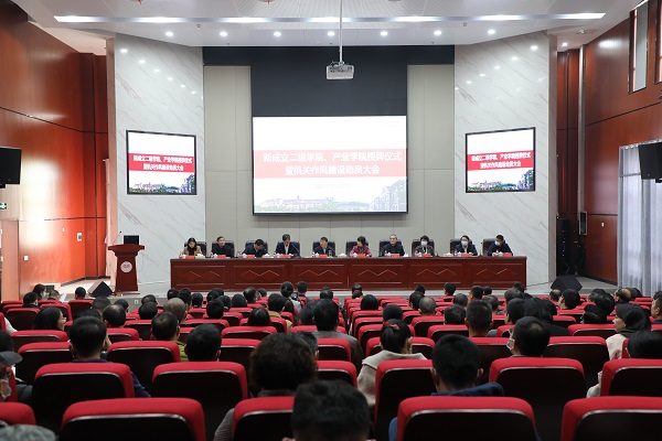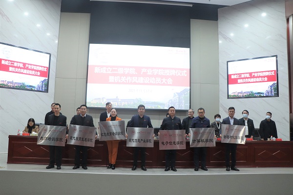 会上,校长童小娇宣读了新成立的3个二级学院和4个产业学院名单,即物理与化学学院、计算机学院、电子信息学院/现代信息产业学院、红色教育培训学院、现代教育发展学院/教师培训学院。随后,校领导为新成立的学院授牌。