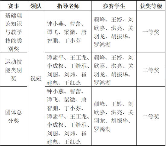 12月10日-13日,由湖南省教育厅主办的“湖南省第六届普通高等学校体育教育专业学生基本功大赛”在湖南师范大学举行。beat365代表队经过三个多月的艰苦强化训练和四天的激烈角逐,获得了基础理论团体一等奖、运动技能团体二等奖、基础理论和运动技能团体总分二等奖,获奖级别和获奖率居全省高校前列。