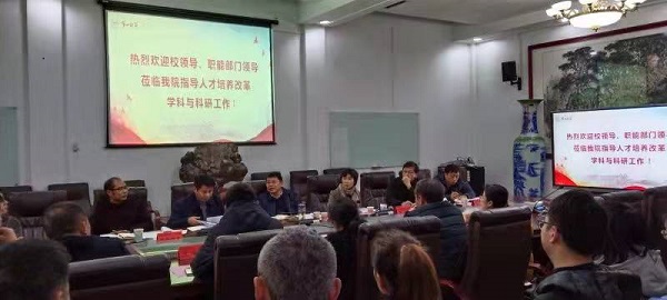 12月14日下午,校党委书记罗成翼、校长童小娇、副校长周发明一行深入数学与统计学院就人才培养方案改革及学科科研工作展开调研并召开座谈会。数学与统计学院领导班子成员、系(教研室)主任、科室主任及部分博士教授代表参加了座谈会,座谈会由副校长周发明主持,学科建设与发展规划处、教务处和科研处负责人陪同调研。