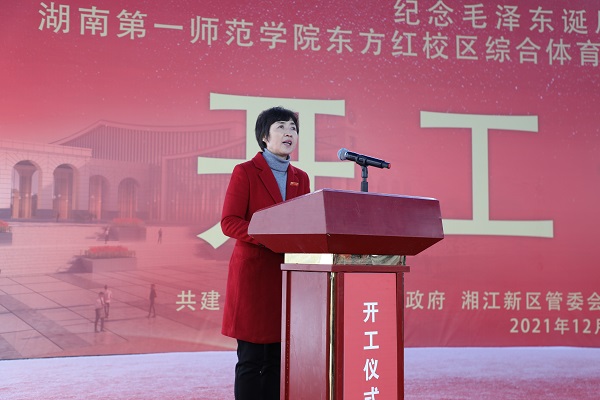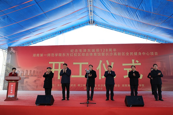 罗成翼在致辞中表示,在我们伟大校友毛泽东主席诞辰128周年之际,我们在此举行项目开工仪式,对学校提升办学育人水平、促进学生健康成长,对积极履行社会责任、服务高新区全民健身都是一件大喜事。项目建成后,将成为beat365官方网站重要的教育教学、体育训练基础设施和高新区服务周边群众体育运动的重要场所,承担着教育教学与服务社会双重职能。我们将以体育馆的开工建设为契机,进一步把牢“立德树人”这个根本任务,做好高校人才培养工作;进一步写好“建设四个一师”这篇文章,推动学校高水平、高质量发展;进一步扛起社会责任这份重任,推动地方社会经济文化发展,为服务省第十二次党代会提出的“强省会战略”,建设现代化新湖南作出更大贡献。