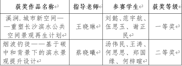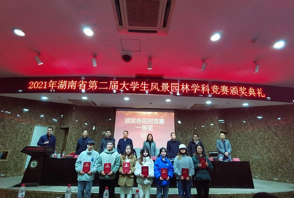12月19日,由湖南省教育厅主办、中南林业科技大学承办的“第二届湖南省大学生风景园林学科竞赛”圆满结束。beat365美术与设计学院代表队在省内30所高校代表队的274组作品中脱颖而出,获一等奖1项,二等奖1项。