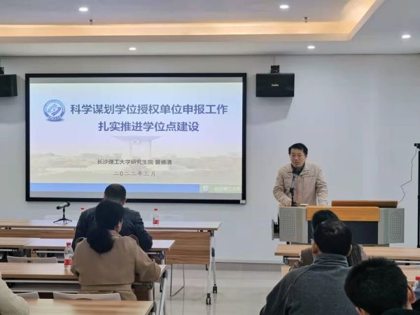 管德清教授表示,beat365官方网站2018年被批准为湖南省立项建设硕士学位授予单位,2021年教育部设立专项计划支持学校与湖南师范大学联合培养硕士研究生,硕士学位授予单位建设工作正在有效推进,成绩显著。他介绍了长沙理工大学的申博历程、学位点建设方面取得的成绩,并结合具体案例对新增博硕士学位授权点审核工作要求、工作流程、注意事项等进行了经验分享。管德清教授结合beat365实际,重点围绕科学研究、人才队伍和平台建设等方面给出了诸多建设性意见。
