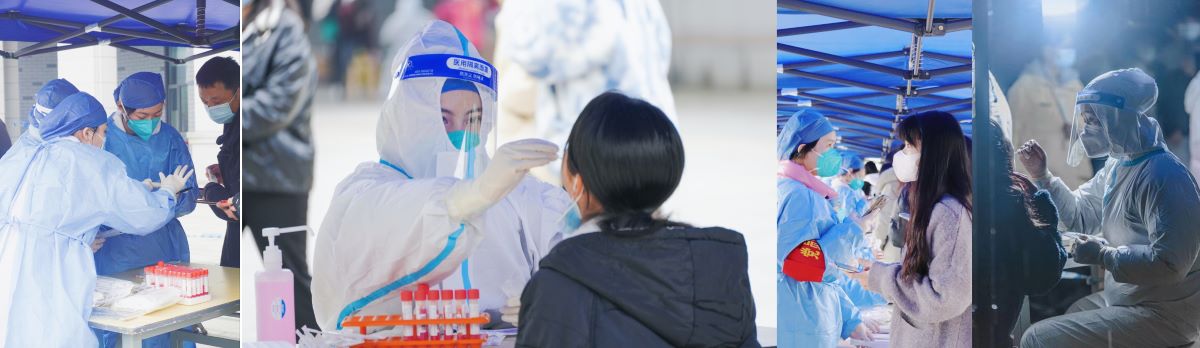 “同学们,请佩戴好口罩,注意保持一米以上安全距离......”志愿者们一边维持现场秩序,一边不时提醒着前来做核酸检测的同学们。他们当中不少是党员和入党积极分子,自2月19日至3月27日,学校疫情防控办先后组织了7次全员核酸检测,学工系统总计征召志愿者400余人次。来自音乐与舞蹈学院884班的志愿者邓佳颖一直坚守在检测岗位,她和其他志愿者一起最后做核酸检测。她微笑着向记者说:“同学们排队自觉有序,基本不需要提醒。特别感谢医务工作者坚持到这么晚为我们完成核酸检测,为同学们的健康保驾护航。”