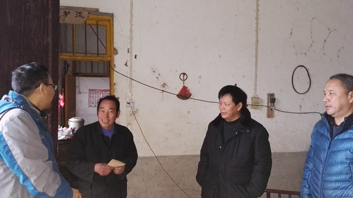 (财务处 供稿) 1月5日,财务处党支部党员代表一行五人,前往白泥村开展“一进二访”工作,看望结对帮扶贫困户左元球。通过村支两委和驻村扶贫队员的详细介绍,得知该帮扶困难户情况特殊,扶贫对象是60岁的孤寡老人,身体状况较差,且为先天性残疾,几乎无经济来源,三兄弟同住一间破旧的土砖危房,属该村较典型的五保特困户。在村干部和驻村扶贫队员陪同下,支部书记邵纯一行来到左元球家,详细询问了他的身体近况、生活情况和正在施工的建房进展情况,并代表财务处全体党员职工送上了爱心捐款和新年祝福,并反复叮嘱他要保重身体,注意建房施工的安全事项,遇有特殊情况和困难,可通过扶贫队员及时反馈,共同商讨解决。走访中,大家就下一步帮扶工作与帮扶对象及beat365驻村扶贫工作队、村支两委进行了交流探讨,为下一步精准扶贫打下了基础。