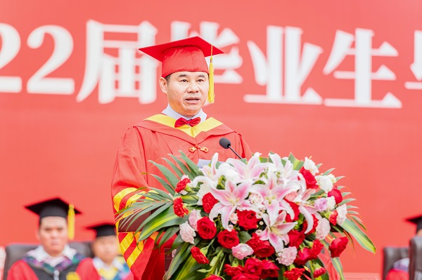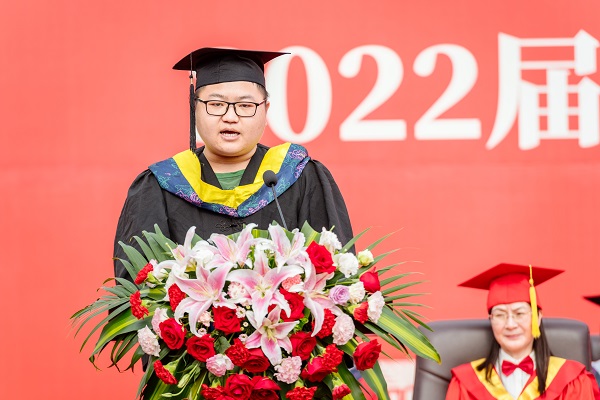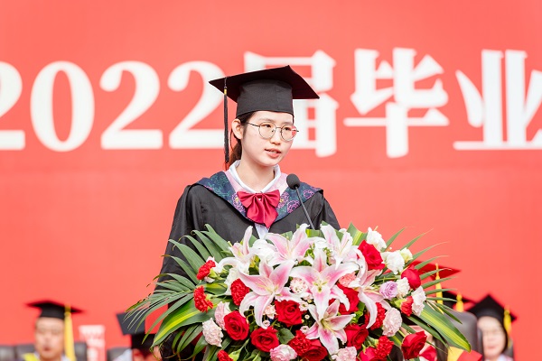 张小豪同学作为毕业生代表在发言中表示,即将远行的毕业生们,当铭记校训、校风和学校的教诲,不负韶华、不负时代,志存高远、脚踏实地,勇担重任,努力成为国之栋梁。