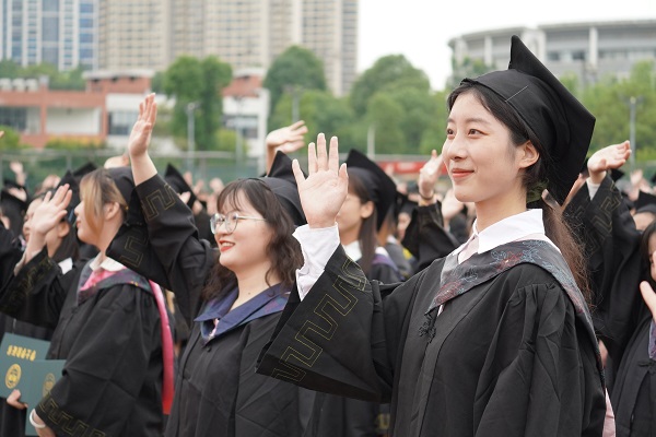 岁月不居,时光难驻。今天,每位毕业生都穿上了学位服盛装出席毕业典礼,手里拿着墨绿色的学士学位证书,袖口边丝丝金线承载着对未来的美好希冀。4258名本科生将携着师长、同窗的殷殷嘱托和深深祝福,踏上崭新征程,奔赴广阔天地。