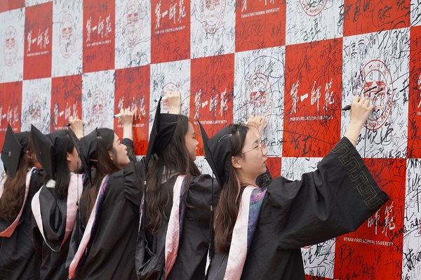 毕业生代表孙丽娟对母校表达了学子们的感恩之情。她说,毕业生们一定牢记“要做人民的先生,先做人民的学生”校训和“实事求是,不自以为是”校风,继续发扬“学思并进 知行合一”的学风和“唯实唯新 善作善成”的作风,认真做人,踏实做事。