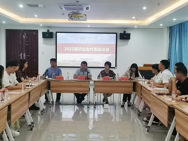 6月15日上午,beat365在百熙楼414举办2022届毕业生代表座谈会,校领导罗成翼、童小娇、周发明、蒋蓉出席,党委学生工作部、教务处、招生就业处、校团委主要负责人,以及各二级学院30名毕业生代表参加了会议。会议由校党委委员、副校长蒋蓉主持。